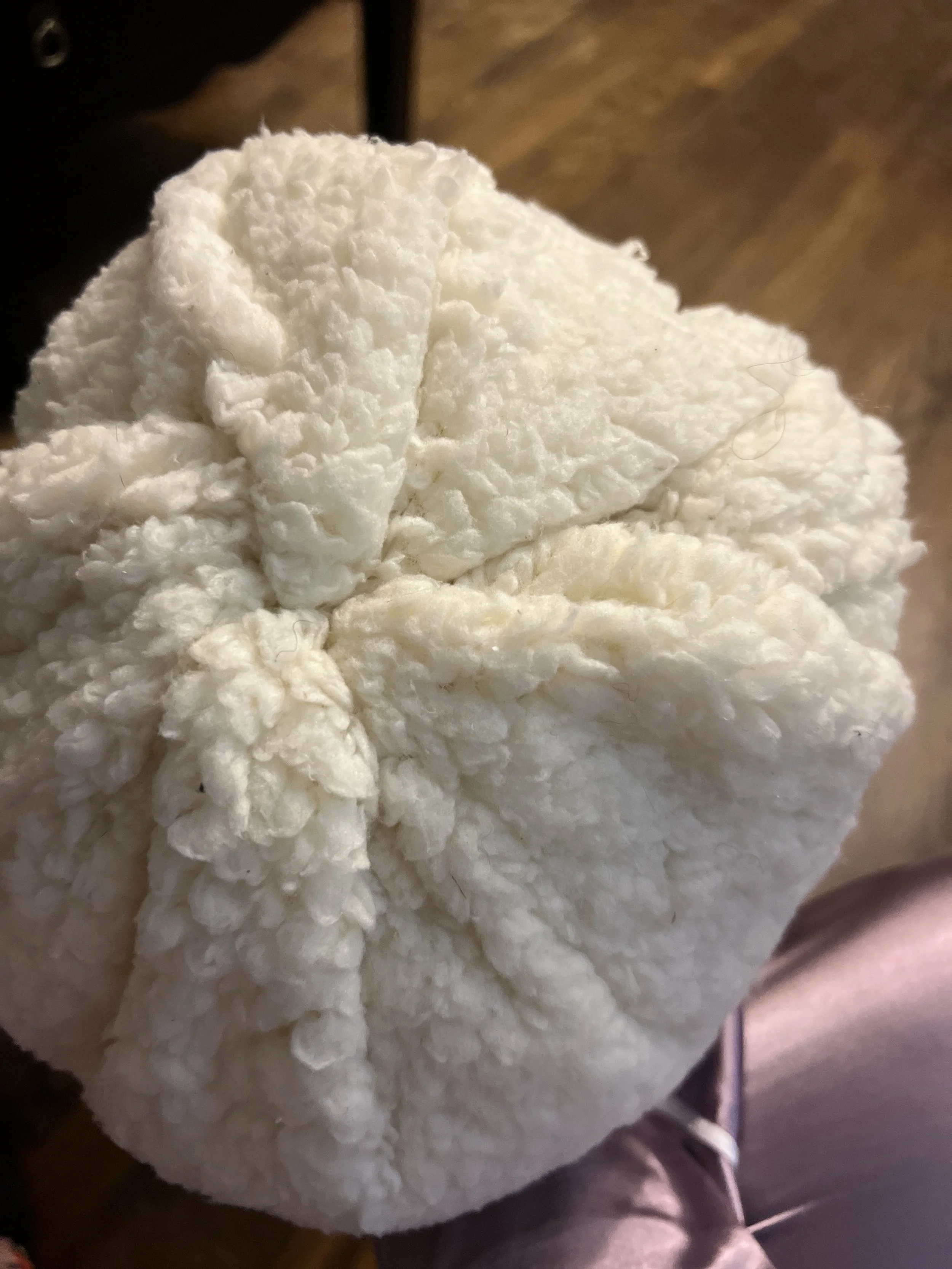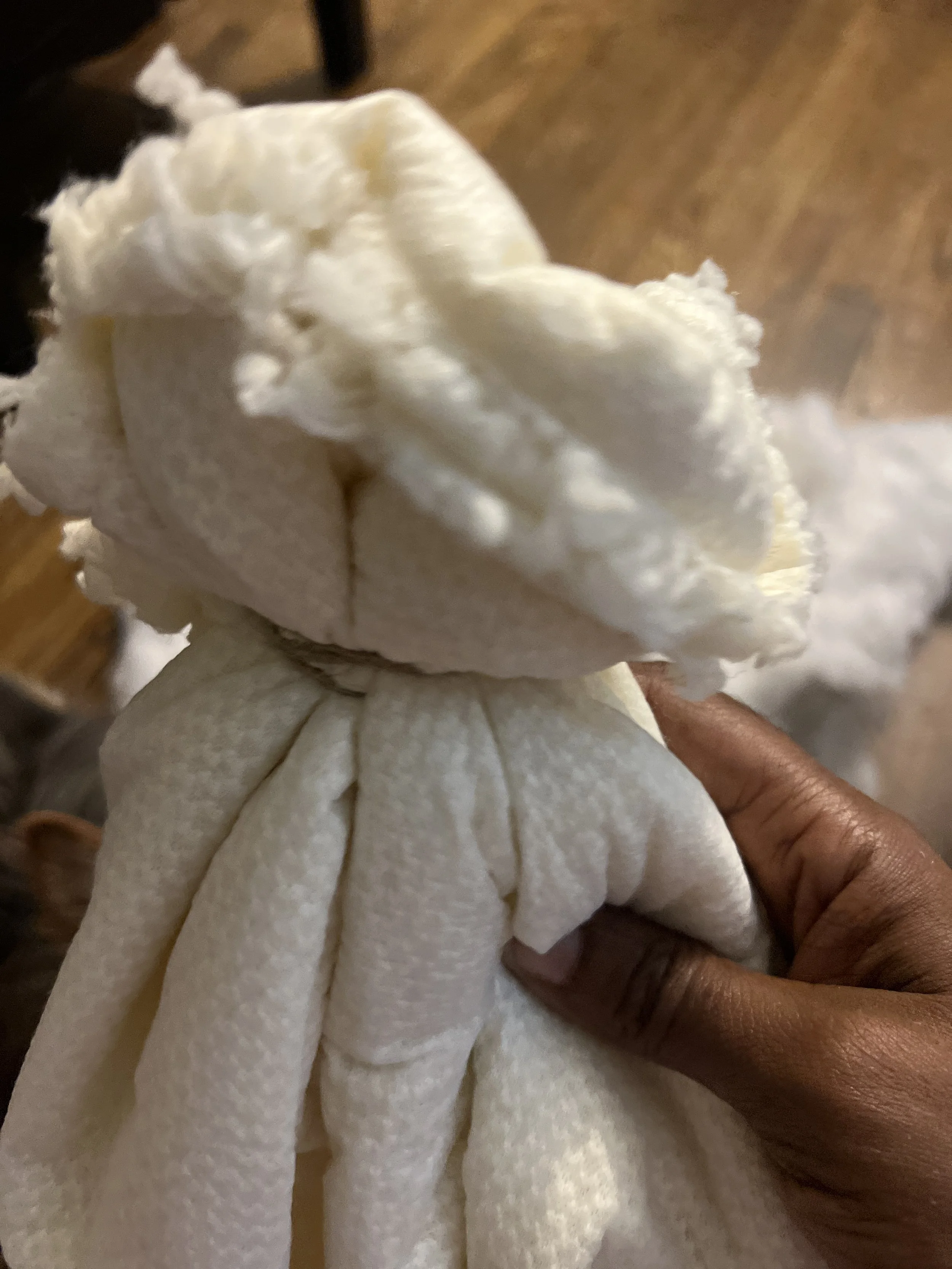 6. For the stem, roll up the excess fabric and use hot glue to keep it in place. I rolled mine up with the fuzzy side on the inside.